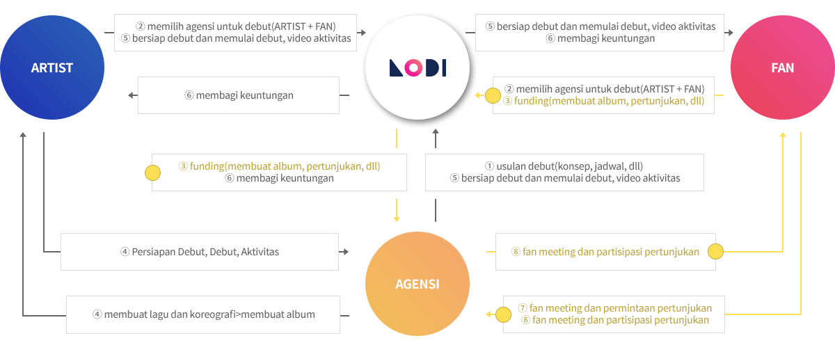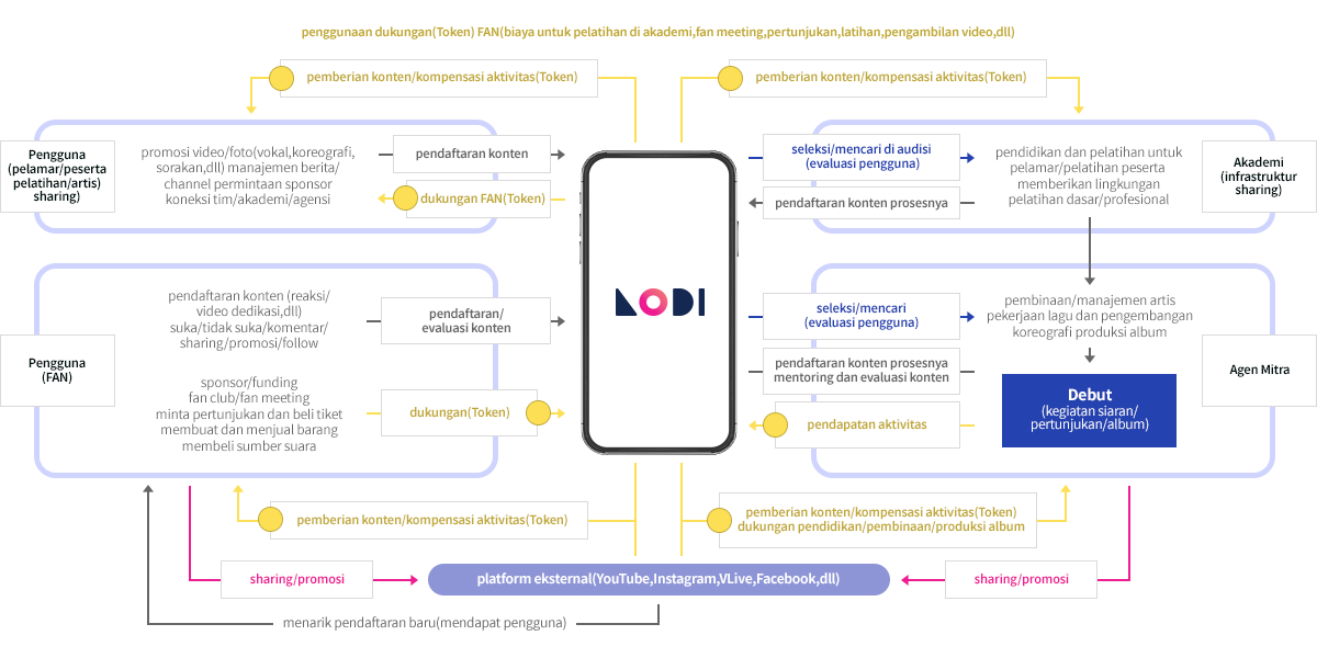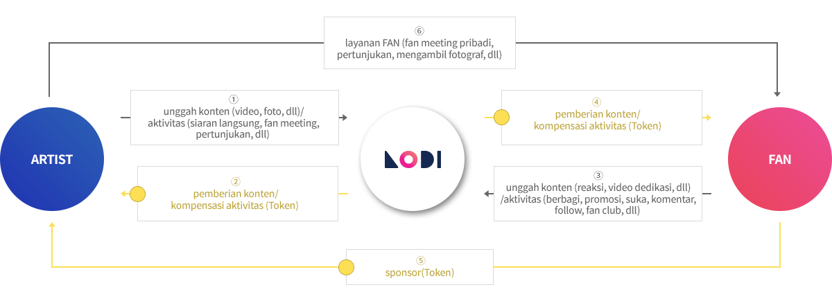 FAN menggunakan token LODI yang diperoleh dalam proses komunikasi atau membelinya secara langsung untuk membeli item, kegiatan fan club/fan meeting, meminta pertunjukan, dan membeli tiket, dll, dan dapat menerima kompensasi dari sebagian pendapatan album dengan funding pada produksi album agar artis favoritmu dapat debut.
