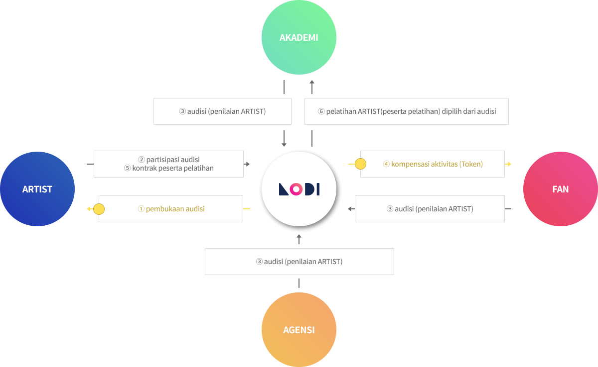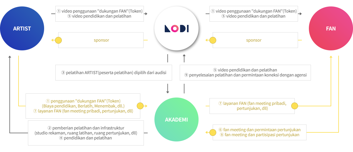 Jika tidak hanya artis tetapi LODI FAN juga ingin, dapat mendaftar kelas dengan menggunakan token LODI di akademi artis LODI. Jika muncul artis memiliki fandom yang cukup, LODI membantu debut dengan menghubungkan artis dan agen mitra.